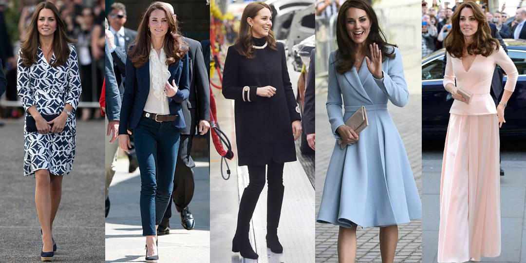 Looks de princesa, isso mesmo, a Duquesa de Crambridge investe no mood ladylike com peças que valorizam sua cintura e criam shape corpo de boneca. Produções muitas vezes inspiradas da sua sogra Princesa Diana. Não é segredo para ninguém que a Lady Di era uma das mulheres mais estilosas de sua época, suas roupas são usadas como referências até hoje.