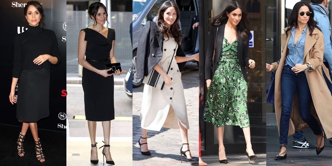 A recente integrante da família real, tem um estilo fashionista. Saia lápis, coletes alongados, vestidos fluídos, coats pesados e macacões não podem faltar no closet da ex-atriz. Falando em casacos, os compridos sempre foram os seus queridos, você nunca vai ver a Duquesa de Sussex sem uma terceira peça.