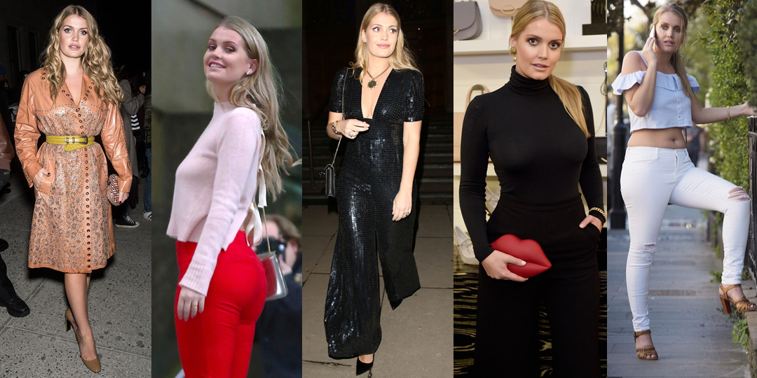 A jovem de 27 anos, modelo e sobrinha da Lady Diana desfila por aí com looks incríveis que chamam a atenção e colaboram para um estilo sexy e elegante. Peças cheias de brilho, como paetês e metalizados, couro, fendas, cortes assimétricos e babados marcam seu visual. Uma trend recorrente nas suas produções é o top cropped para eventos informais.