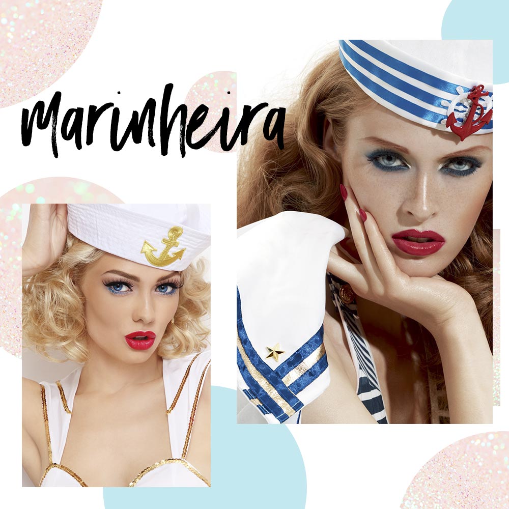 Se você escolheu se fantasiar de marinheira, pode dar um toque vintage e se inspirar nas pin ups na hora de fazer a maquiagem. Batons em tons laranja ou vermelho vibrante, lápis de olho azul e um pó bronzeador arrematam o look!