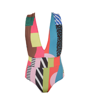 | Vestido Crepe Poá Babados | Macacão Crepe Viscose Poá | Pantacourt Cinto Listras | Maiô Kupfer Estampa Memphis |