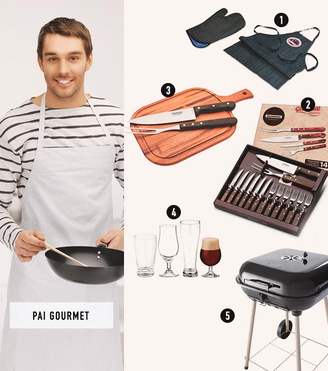 Para aquele pai que se aventura na cozinha e adora comandar o churrasco do domingo, esta linha de utensílios gourmet fazer ele receber os melhores elogios!