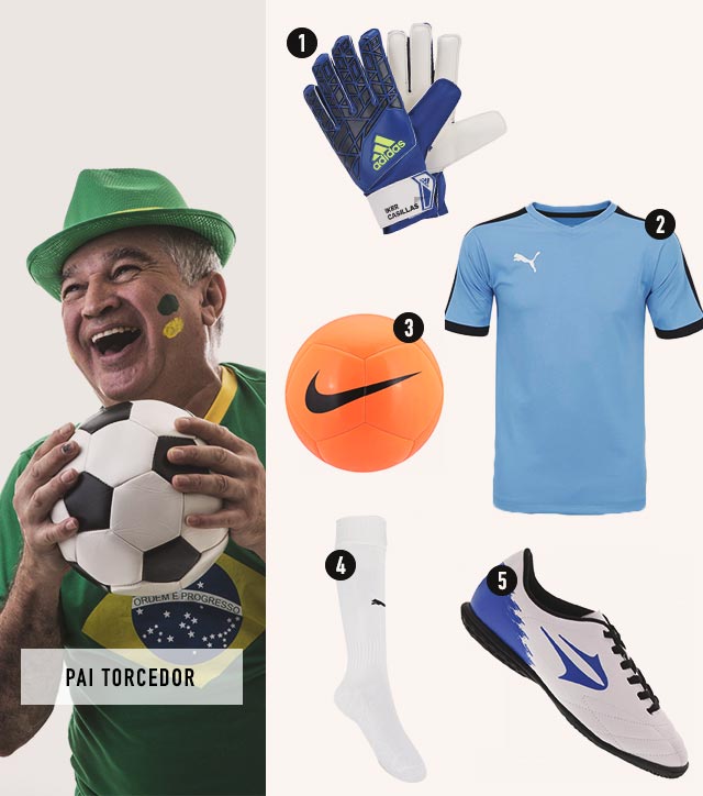 Você vai marcar um golaço com seu velhinho! Camisetas do time do coração, chuteiras, bolas e meiões, tudo para seu pai chegar equipado nas partidas!