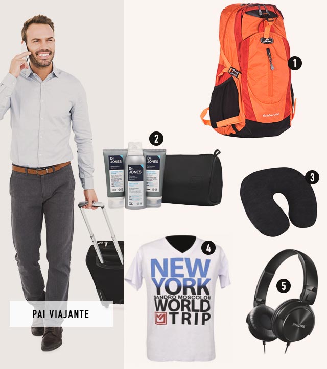Seu pai vive viajando ou mora em outra cidade? Que tal deixar os trajetos dele mais confortáveis e prazerosos? Confira a linha de produtos indispensáveis e passagens para uma viagem deliciosa!