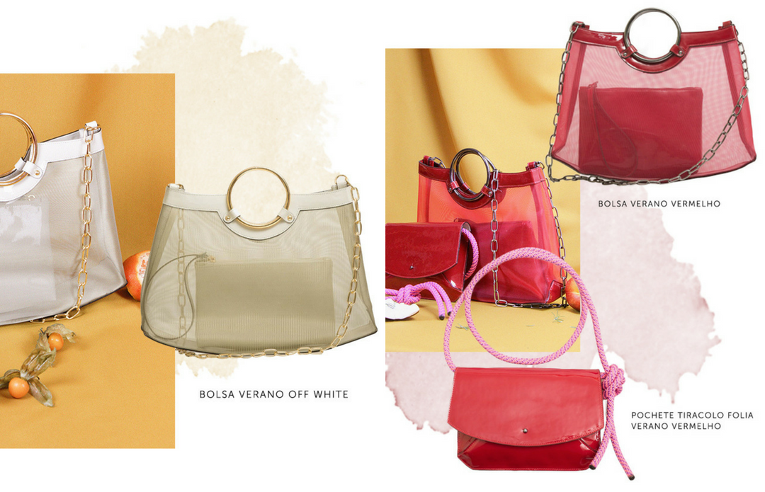 Os acessórios com transparência são o novo fashion trend e a marca não podia ficar de fora dessa. Alerta tendência: as net bags, (aquelas bolsas que lembram redes de pesca) e as bolsas de feiras são os acessórios-desejo do verão’19. Hits da temporada vão dar frescor e estilo aos seus looks.