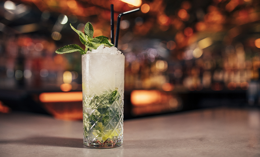 Para preparar, escolha um copo comprido e coloque as folhas de hortelã, açúcar e com cuidado pressione com um pilão. Adicione o gelo, em seguida o rum, o suco de limão e complete o copo com água com gás.